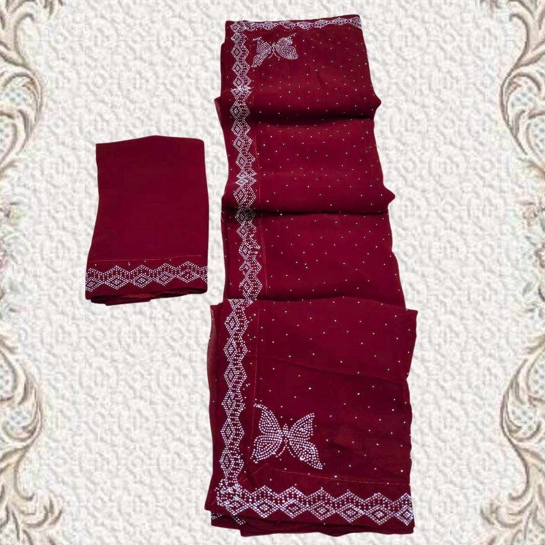 | Name : | S4s Maroon Siroski Butterfly Stones Lace Georgette Party Wear Saree |